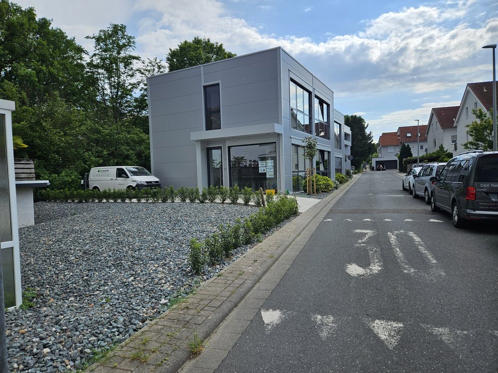 Die Lagerhalle, die seit Anfang des Jahres im Bau am Eingang zum Wohngebiet “Europaring” im Bau war, ist inzwischen fertiggestellt. Der graue, zweistöckige Zweckbau steht genau gegenüber den Reihenhäusern und man kann nun das ganze Ausmaß des Eingriffs ermessen: Gebaut wurde bis fast an den Straßenrand, an beiden Enden des Gebäudes finden sich gepflasterte Parkplätze. Die Lücke zwischen Lagerhalle und Straße wurde geschottert und mit invasiven Pflanzen, wie Kirschlorbeer und Rhododendron, bepflanzt. Zwischen dem angrenzenden Wohnhaus und der Lagerhalle sind etwa 100 Quadratmeter komplett mit Schotter versiegelt.