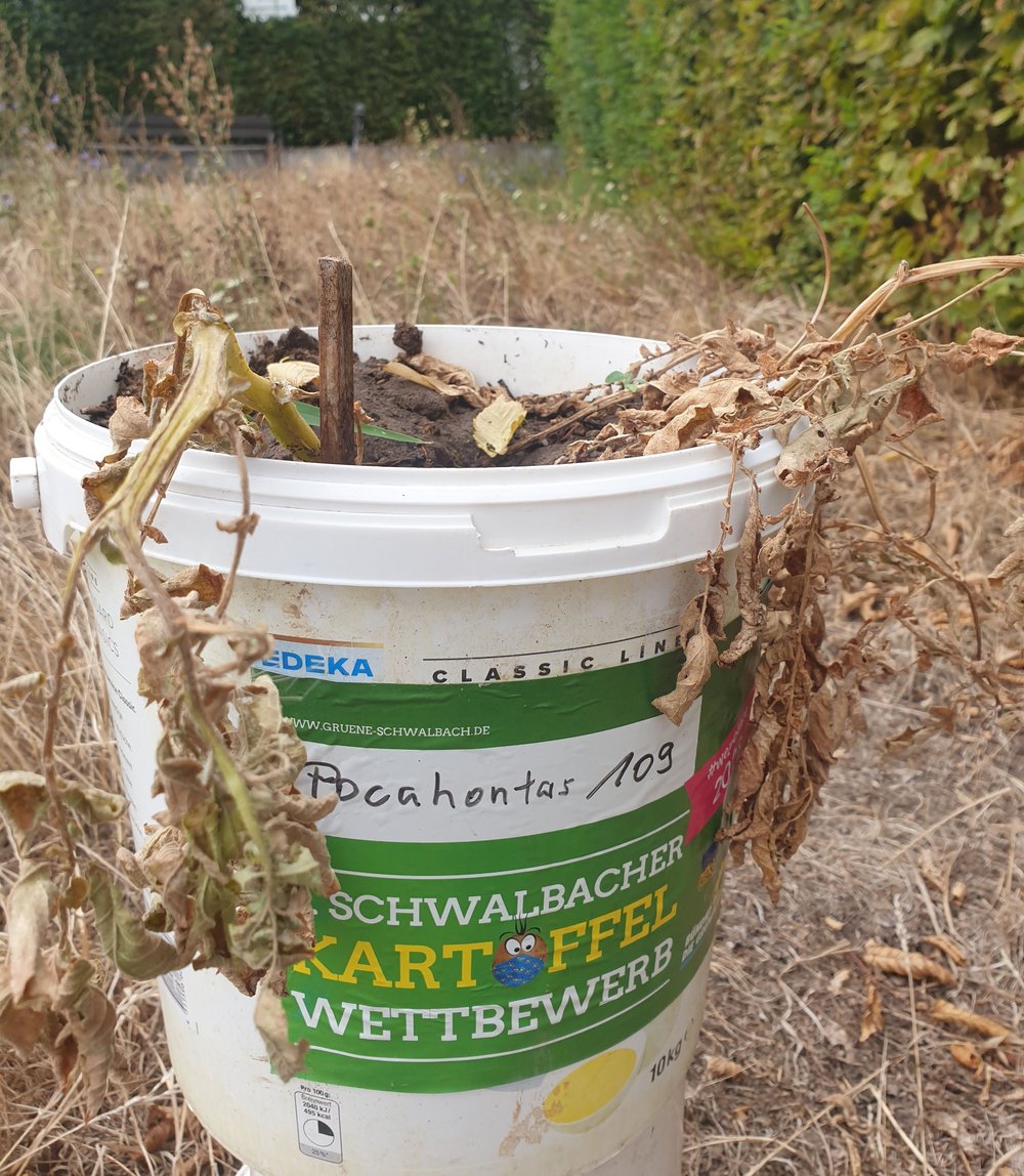 Im April hatten die Schwalbacher Grünen ihren traditionellen Kartoffelwettbewerb in die 6. Runde gestartet. Obwohl der Pflanztag etwas regnerisch war, hatten im April insgesamt 104 Stadtgärtner:innen ihre Kartoffel in je einen 10-Liter-Eimer mit Erde gesetzt und mit nach Hause genommen. Inzwischen sind in den die meisten Eimern Kartoffelpflanzen gewachsen. Dieses "Kraut" beginnt nun zu welken. "Das ist normal und schadet den Knollen in der Erde nicht.", erläutert Mitorganisator Thomas Nordmeyer, "Die Knollen überdauern die Zeit in der Erde gut, es ist ja ihre Aufgabe, dort auf das nächste Jahr zu warten um eine neue Pflanze zu bilden." Er empfiehlt, diese Eimer einfach mit dem welken Kraut bis zum Erntetag in den Schatten zu stellen, damit er nicht völlig austrocknet. Zur gemeinsamen Ernte laden die Grünen für Sonntag den 18. September ab 17:00 Uhr auf den Marktplatz. "Wir freuen uns darauf, wieder ein kleines Kartoffelfest mit Apfelsaft, Apfelwein und Grüner Soße zu feiern." Die Zeichen stehen gut, dass dieses Jahr wieder gemeinsam gefeiert werden kann.